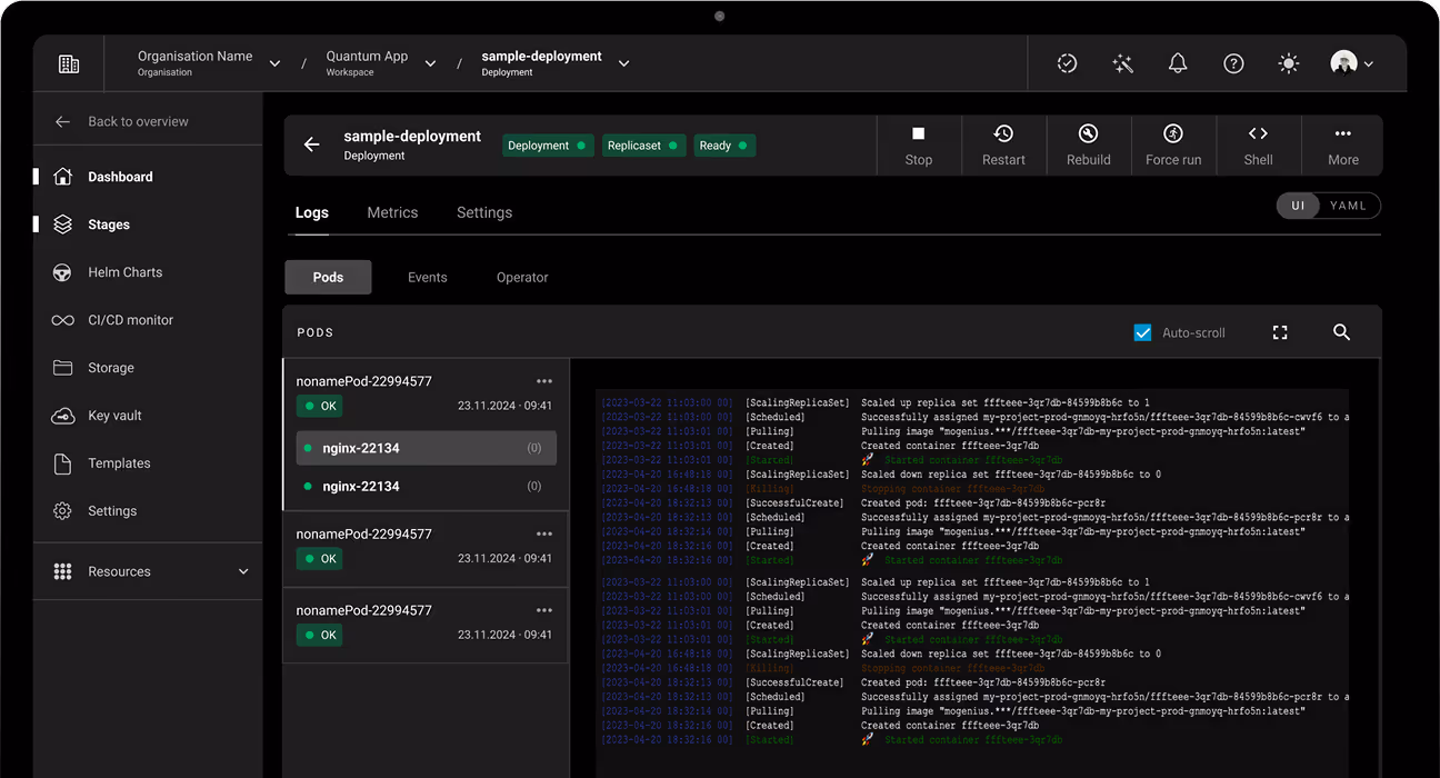 Offer your customers the ability to automate workflows effortlessly through automated CI/CD pipelines and Helm-based deployment, supported by REST API and CLI for full control.
